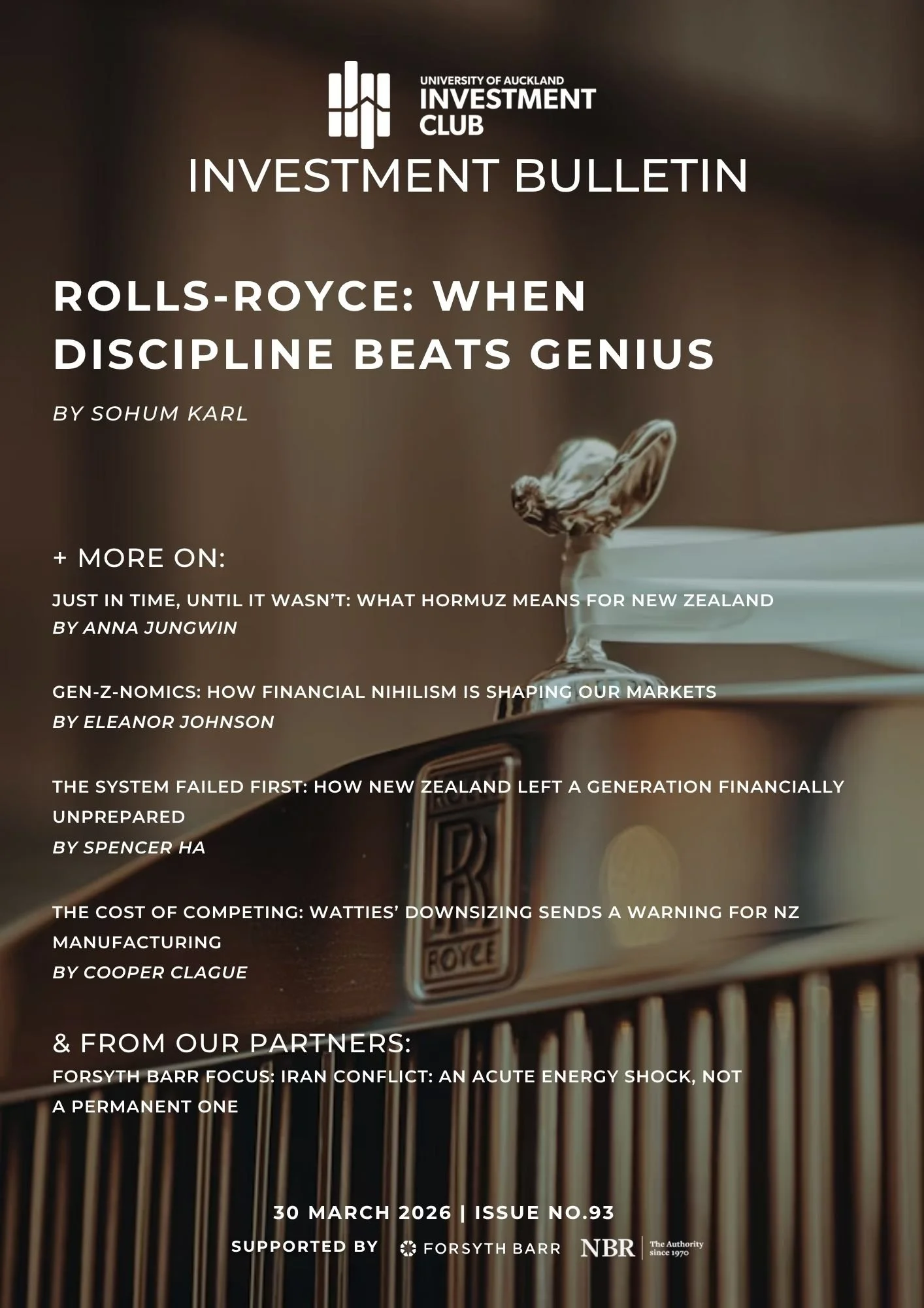 This month we spoke to Andrew Meng, an investment banking analyst at Goldman Sachs and prior Bulletin Editor. Andrew graduated from the University of Auckland in 2023 with a Bachelors of Commerce and Engineering majoring in finance, economics and mechanical engineering.